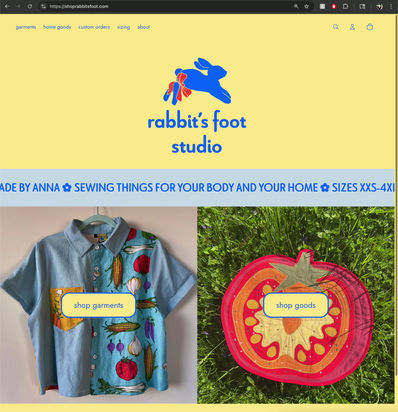 Rabbit’s Foot is my sewing and quilting studio, operating out of my living room and specializing in quilty home goods and easy-to-wear garments. Every piece is thoughtfully designed and sewn by me!